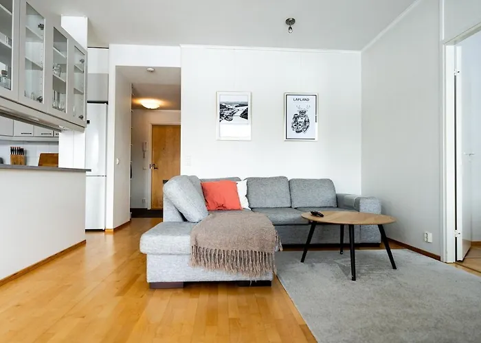 Jaetkaenkynttilae Flat With Private Sauna Rovaniemi med 1 sovrum erbjuder närhet till turistattraktioner som Sampokeskus Shopping Centre, som ligger ungefär 6 minuters promenad bort. Wi Fi och en parkering finns också i den strandnära 60 m² stora lägenheten.